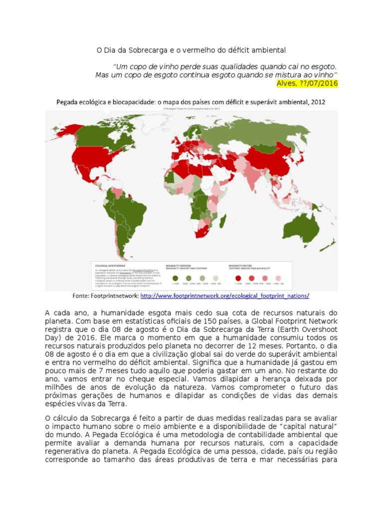 08 de agosto o dia em que a civilizao global sai do verde do supervit ambiental
