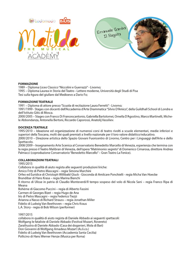 1995 Diploma Laurea in Storia del Teatro - Lettere moderne, Universit degli Studi di Pisa