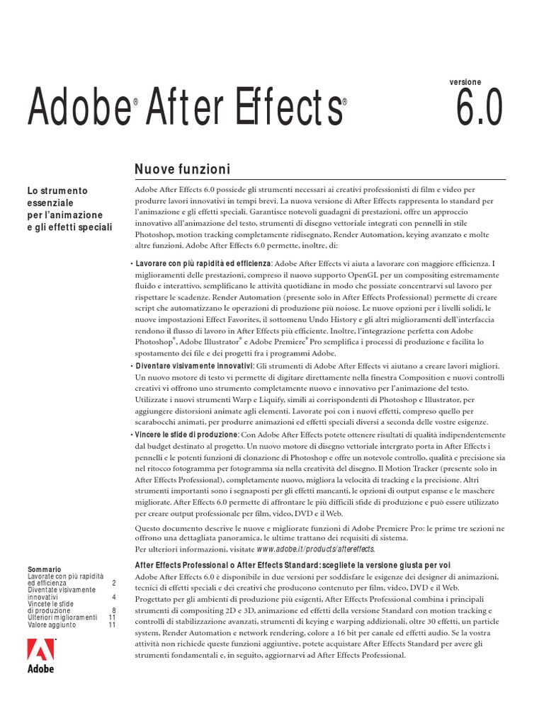 migliorate. After Effects 6.0 permette di affrontare le pi difficili sfide di produzione e pu essere utilizzato
