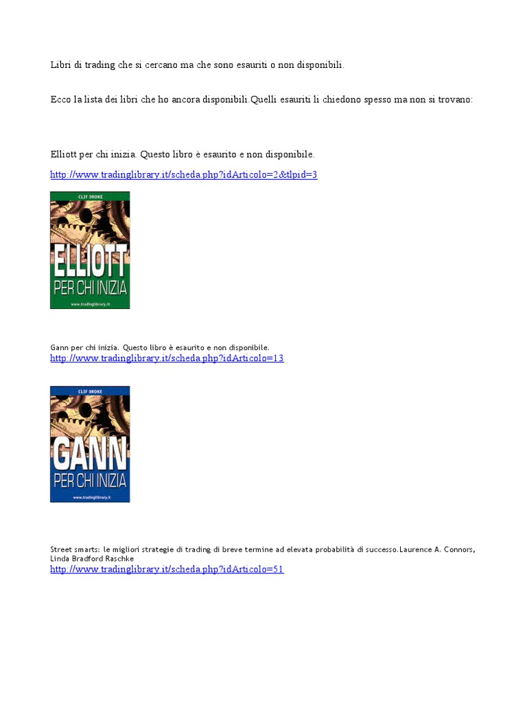 Libri di trading che si cercano ma che sono esauriti o non disponibili.
