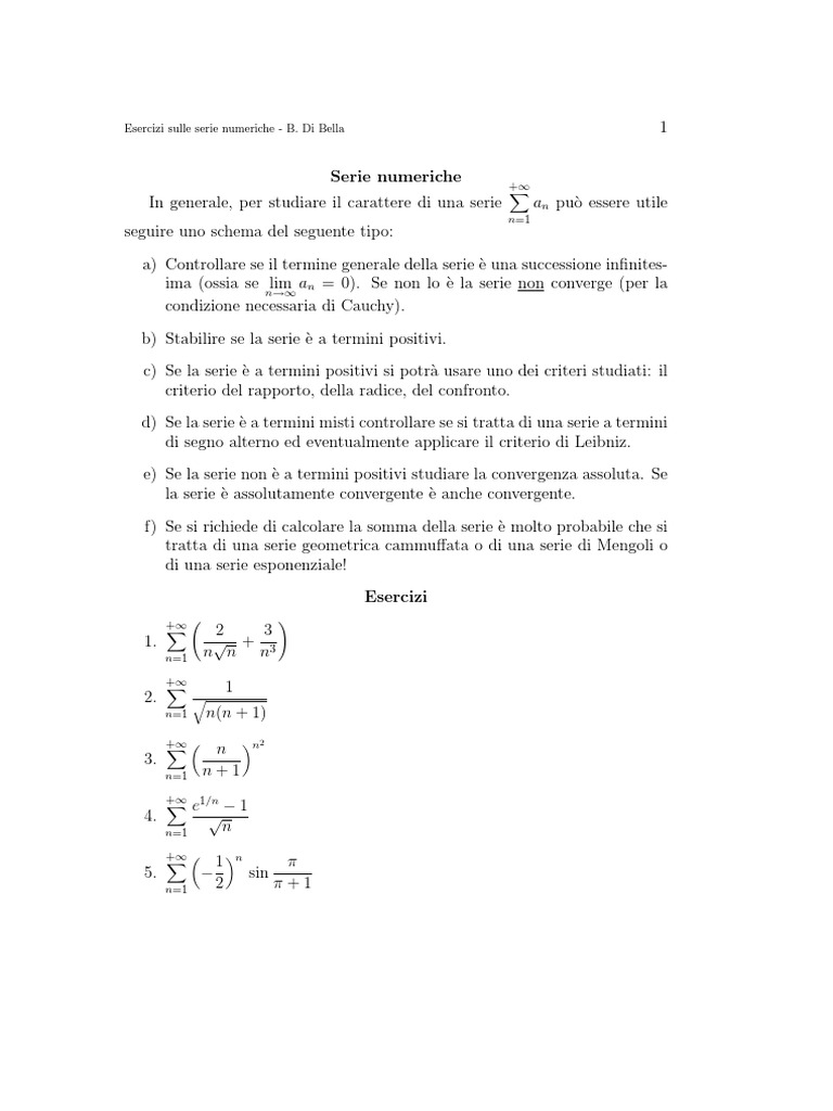 Esercizi sulle serie numeriche - B. Di Bella