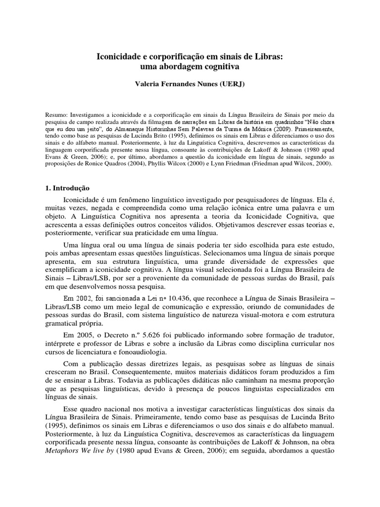 compreender esses fenômenos linguísticos, optamos por, primeiramente, apresentar as teorias linguísticas sobre a iconicidade e embodiment; posteriormente, as exemplificamos com palavras ou expressões da Língua Portuguesa e da Libras.