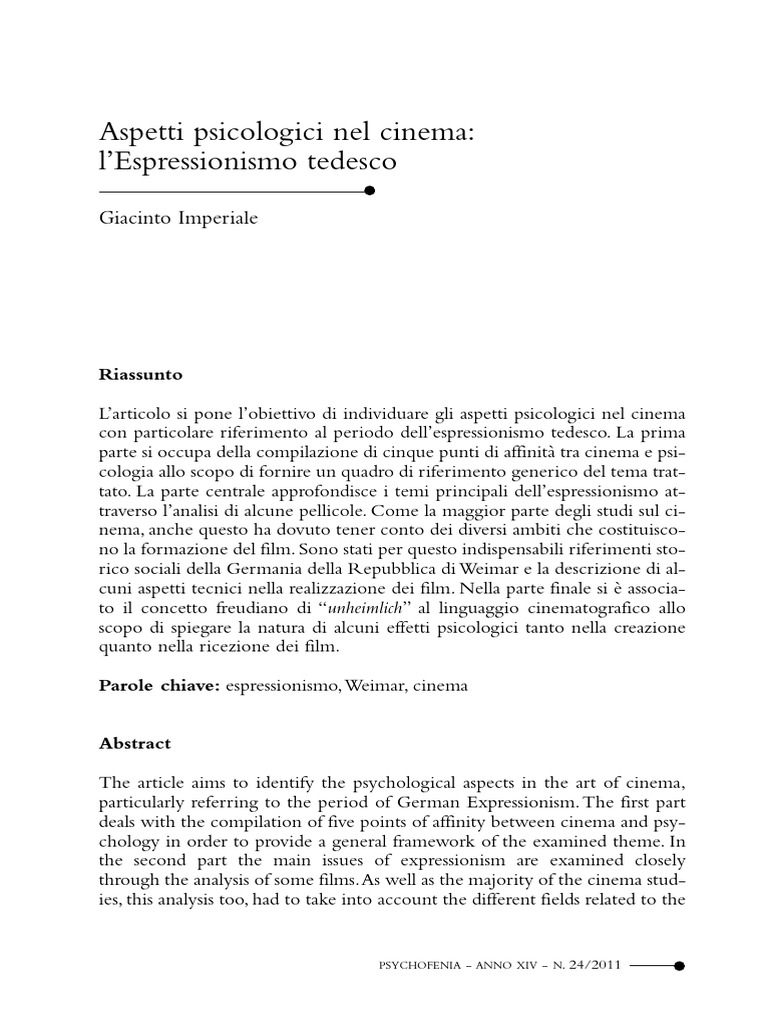 trait. Le point central de larticle approfondit les principaux thmes de lexpressionnisme par lanalyse dun certain nombre de pellicules cinmatographiques. Comme la plupart des tudes sur le cinma, cet tude aussi