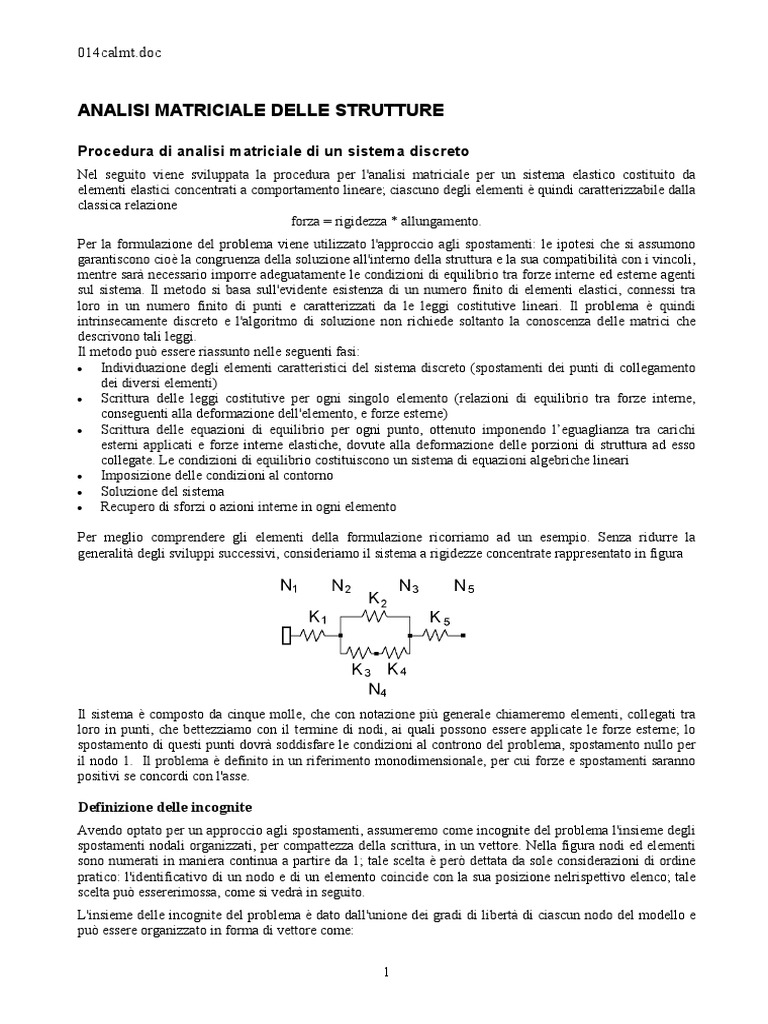 Il sistema composto da cinque molle, che con notazione pi generale chiameremo elementi, collegati tra