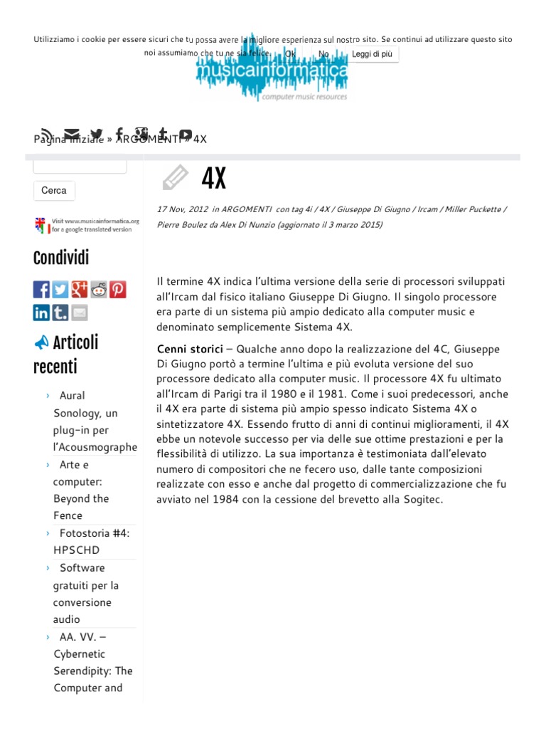 17 Nov, 2012 in ARGOMENTI con tag 4i / 4X / Giuseppe Di Giugno / Ircam / Miller Puckette /