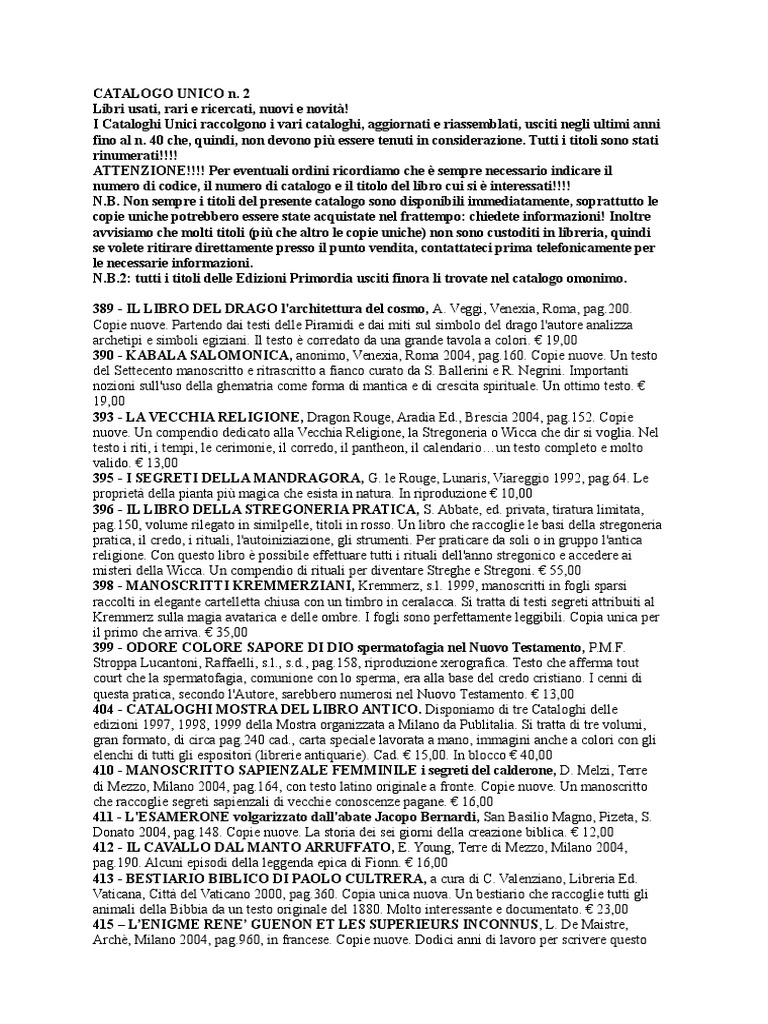 I Cataloghi Unici raccolgono i vari cataloghi, aggiornati e riassemblati, usciti negli ultimi anni