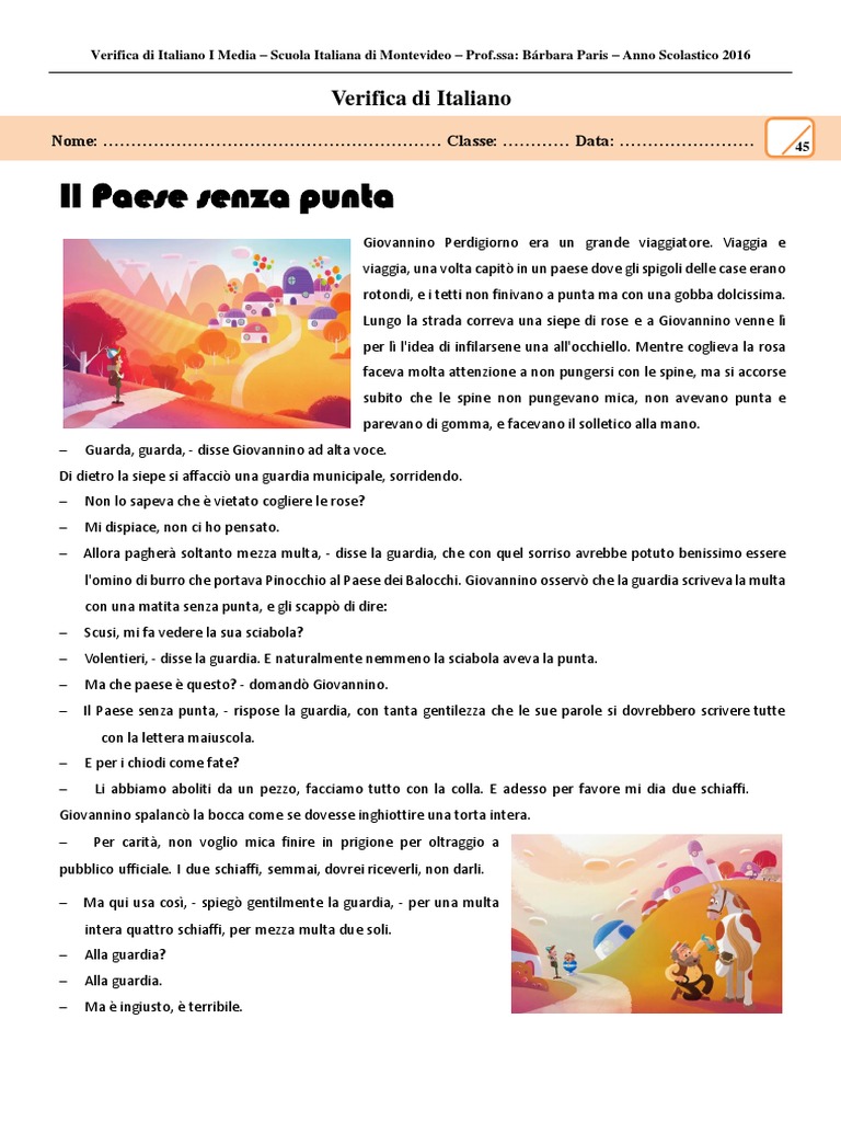 Verifica di Italiano I Media Scuola Italiana di Montevideo [Link]: Brbara Paris Anno Scolastico 2016