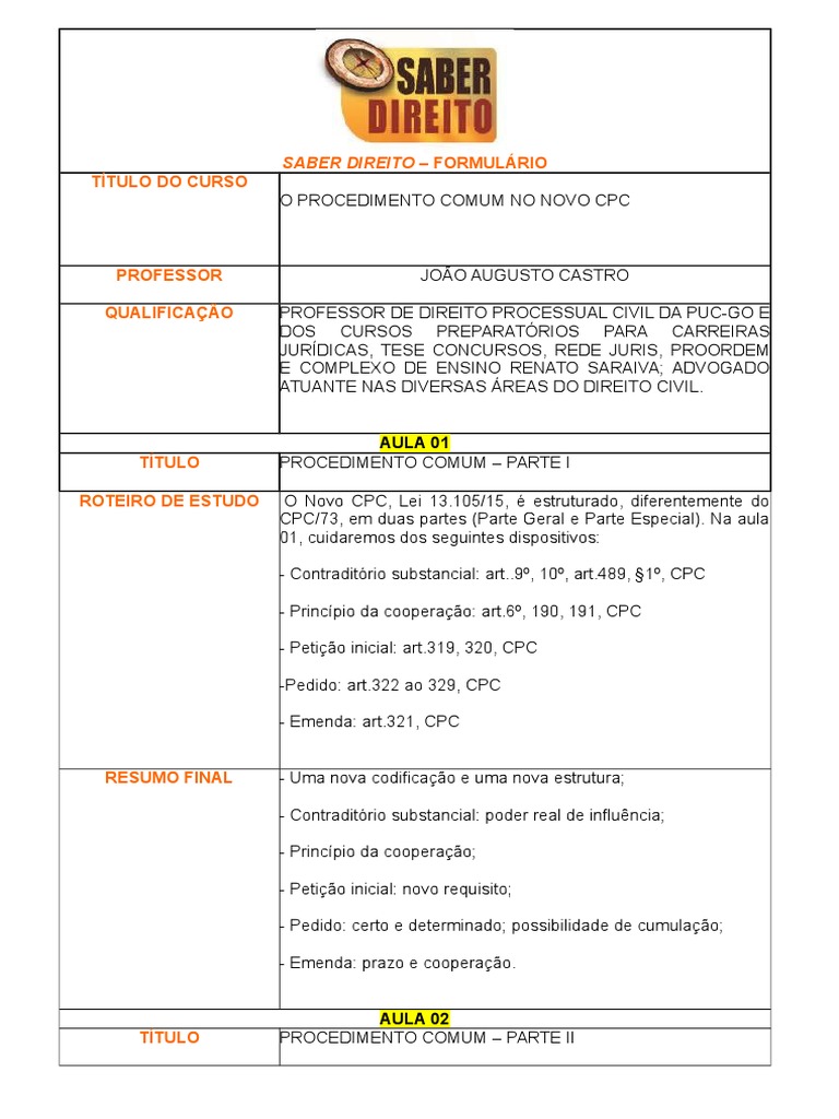 O Novo CPC, Lei 13.105/15, estruturado, diferentemente do