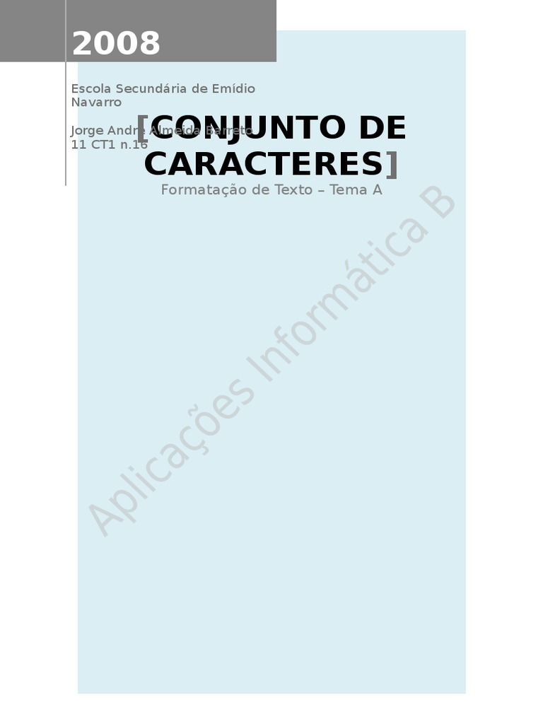 Neste trabalho falarei sobre os conjuntos de caracteres na