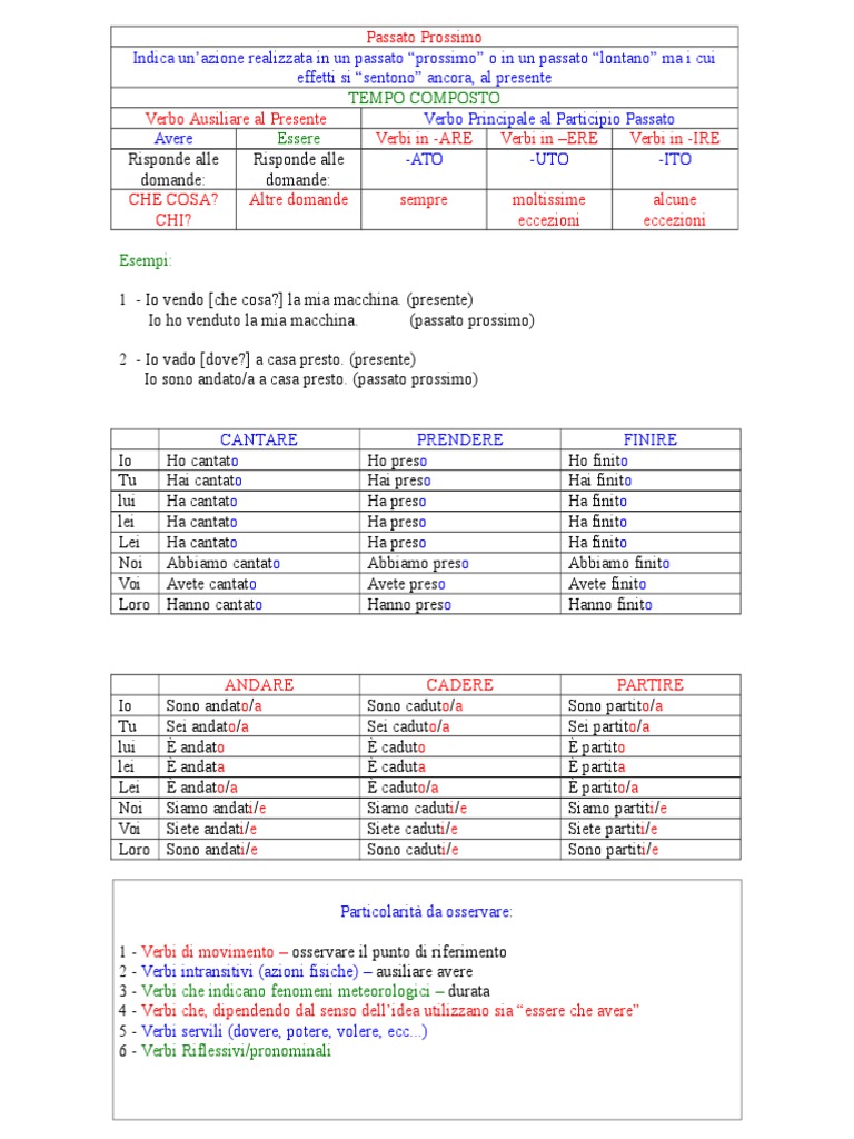 2 - Verbi intransitivi (azioni fisiche) ausiliare avere