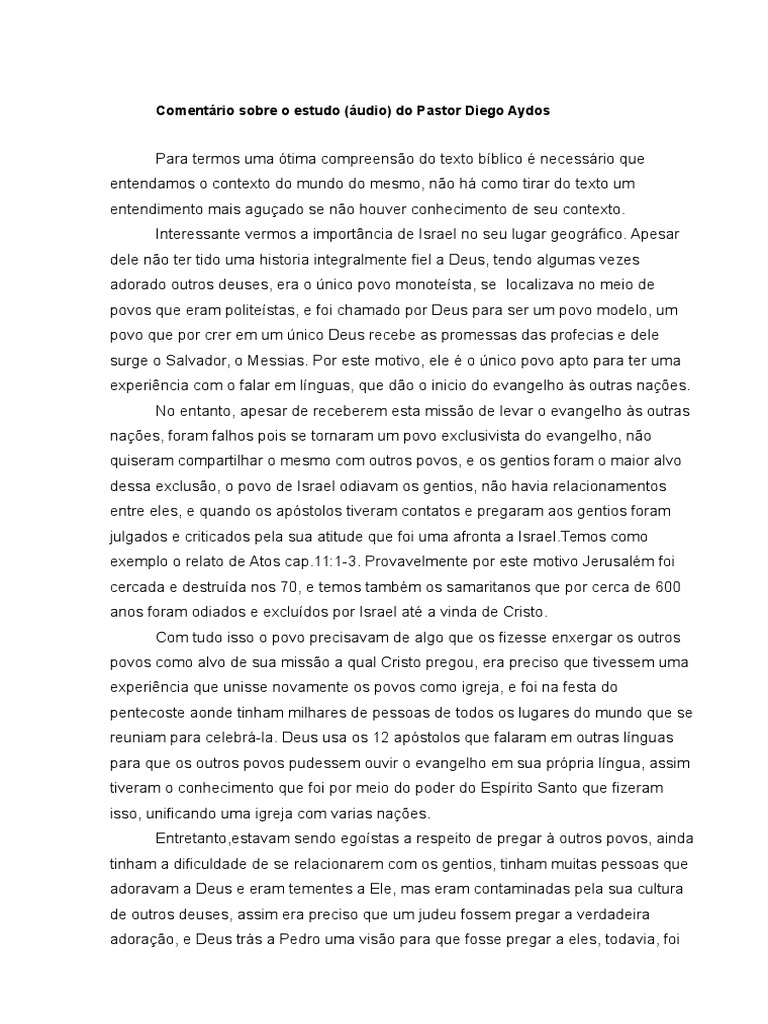 Comentrio sobre o estudo (udio) do Pastor Diego Aydos