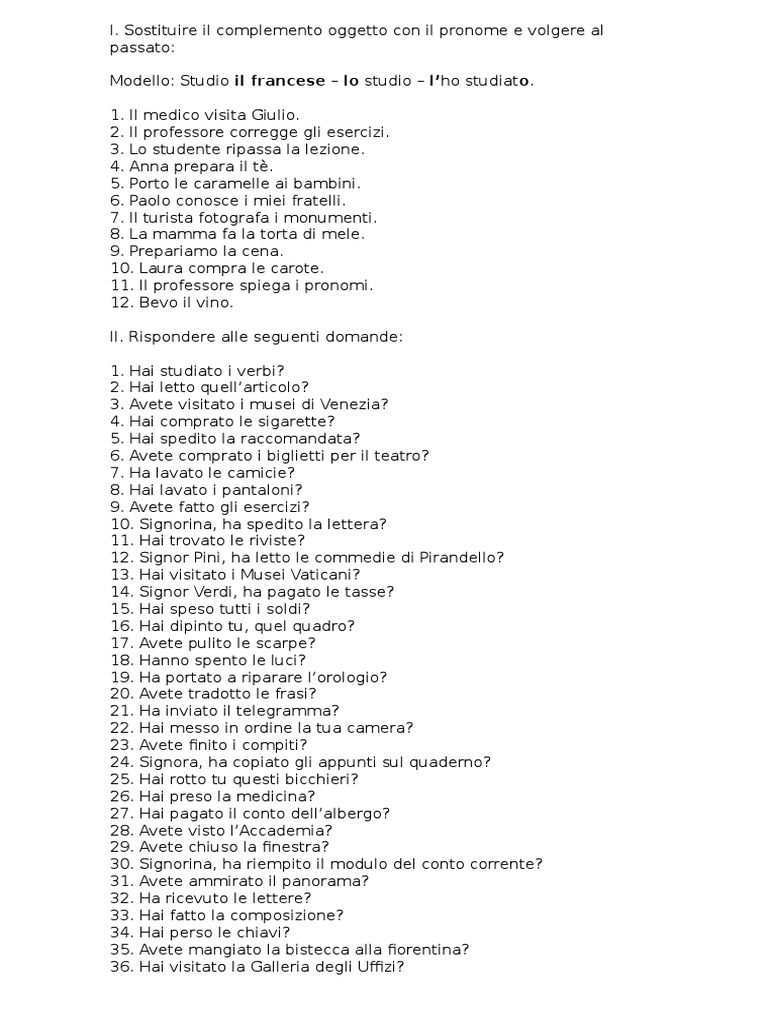 1. Hai studiato i verbi?