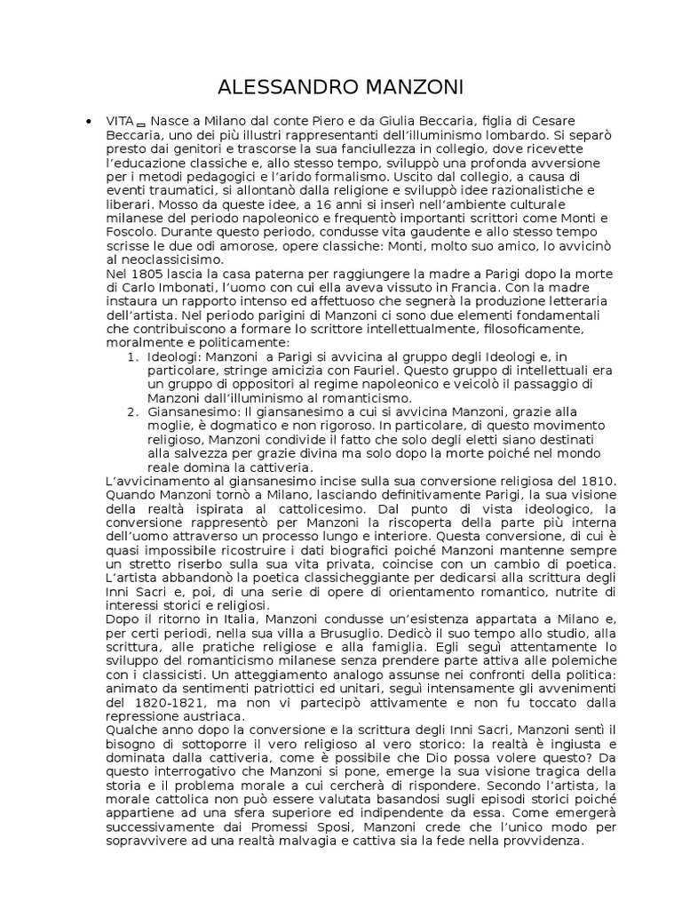 quasi impossibile ricostruire i dati biografici poich Manzoni mantenne sempre