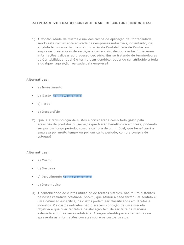 ATIVIDADE VIRTUAL 01 CONTABILIDADE DE CUSTOS E INDUSTRIAL