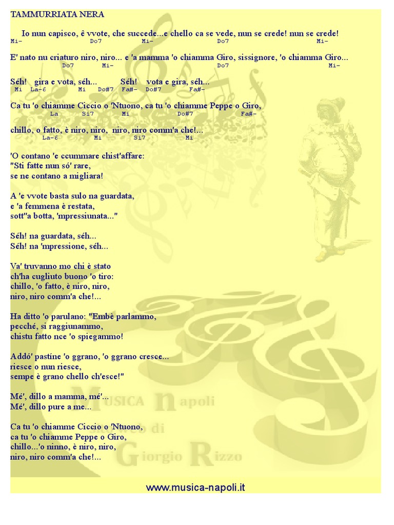 E' nato nu criaturo niro, niro... e 'a mamma 'o chiamma Giro, sissignore, 'o chiamma Giro...