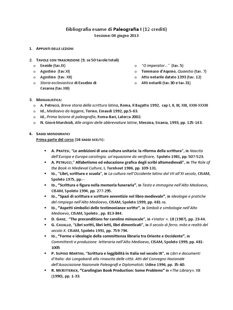 Bibliografia esame di Paleografia I (12 crediti)