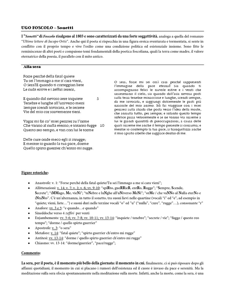 In particolare, questo sonetto tratta temi molto cari a Foscolo: innanzitutto, quello dellesilio, unito a quello del