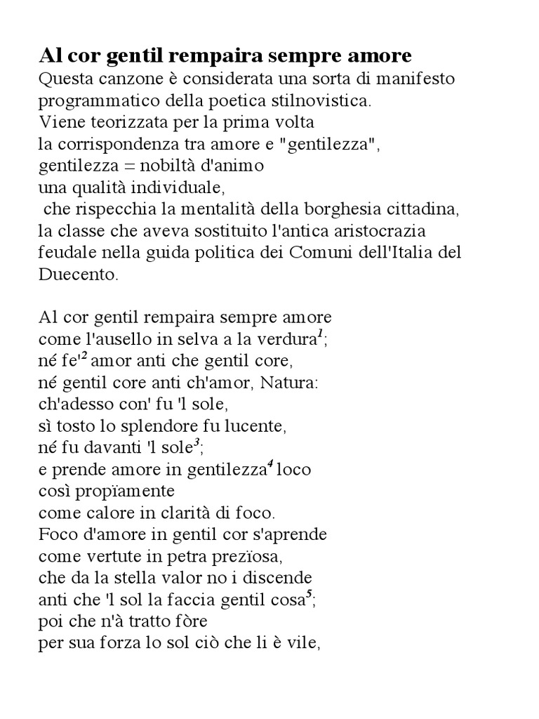 Amore in gentil cor prende rivera