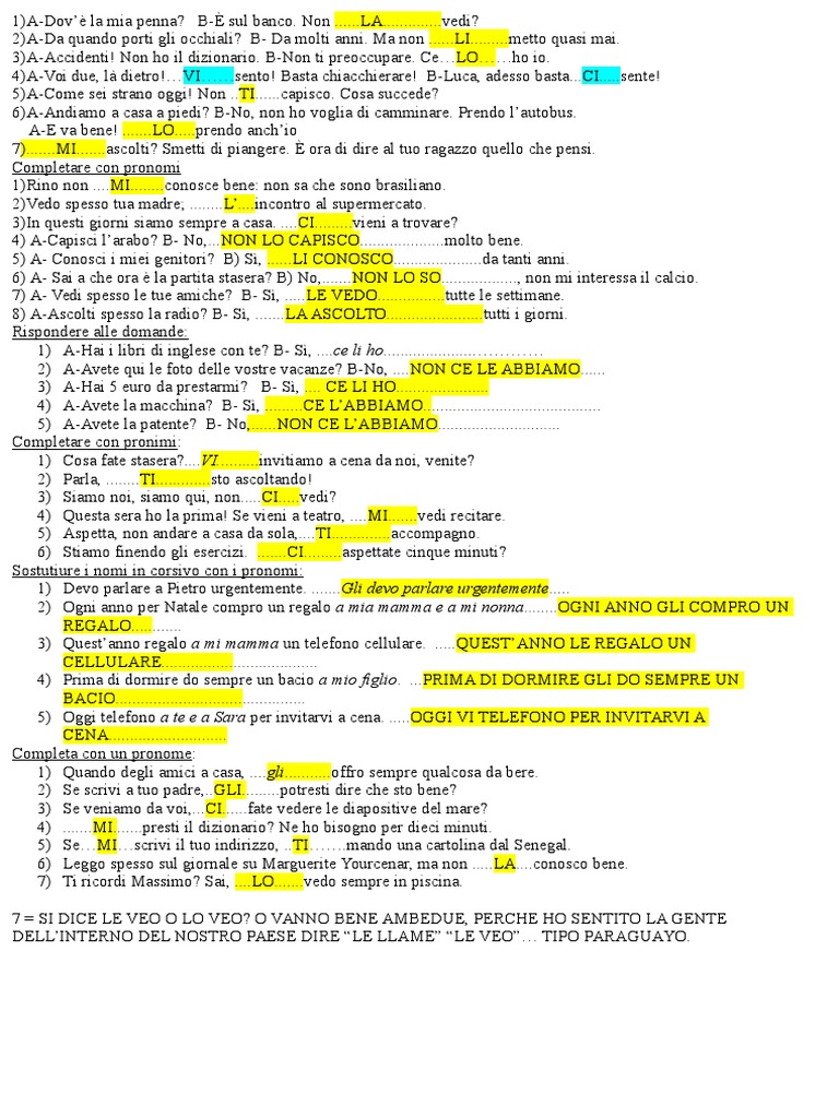 5) A- Conosci i miei genitori? B) S, ......LI CONOSCO.....................da tanti anni.