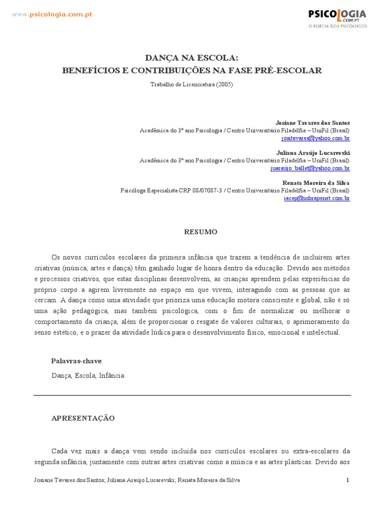 Cada vez mais a dana vem sendo includa nos currculos escolares ou extra-escolares da