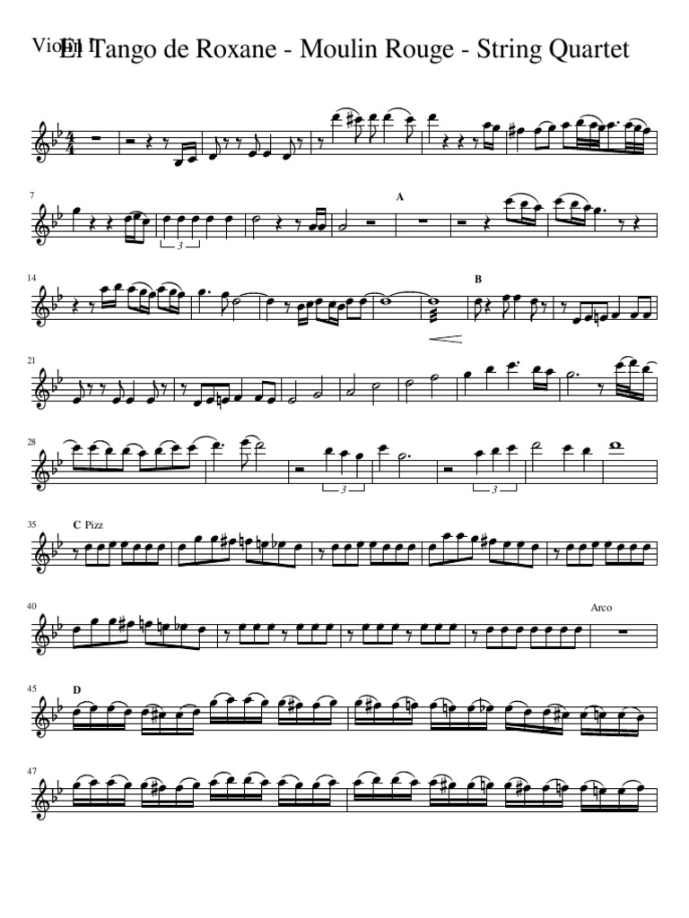 El Tango de Roxanne - Moulin Rouge Movie Version - String Quartet-Violin I