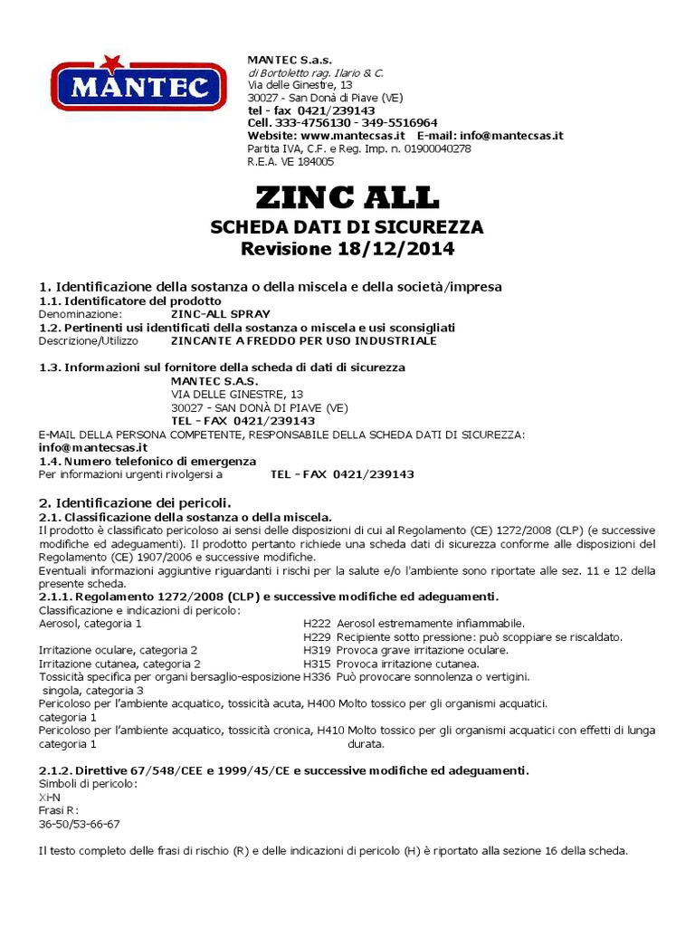 ZINCANTE A FREDDO PER USO INDUSTRIALE