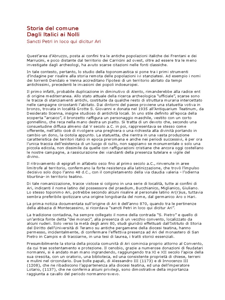 pi antico documento pergamenaceo che ci informa dell'esistenza di Ari risale al 1120, anno