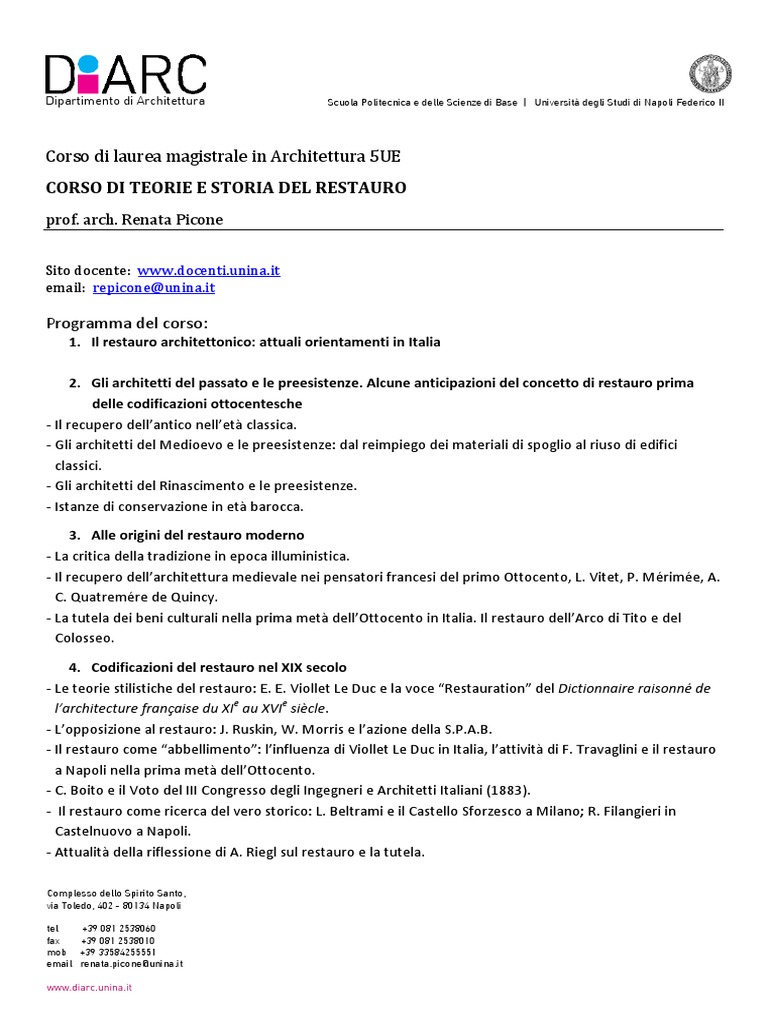 CORSO DI TEORIE E STORIA DEL RESTAURO