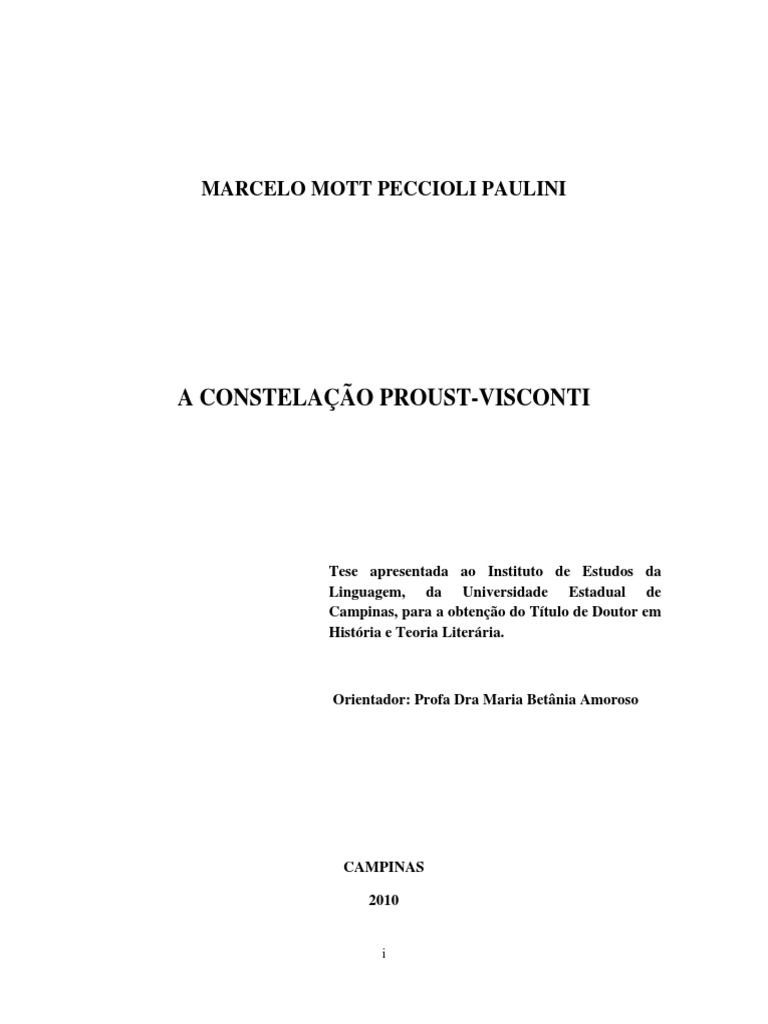 A Constelao Proust-Visconti / Marcelo Mott Peccioli Paulini. -Campinas, SP : [s.n.], 2010.