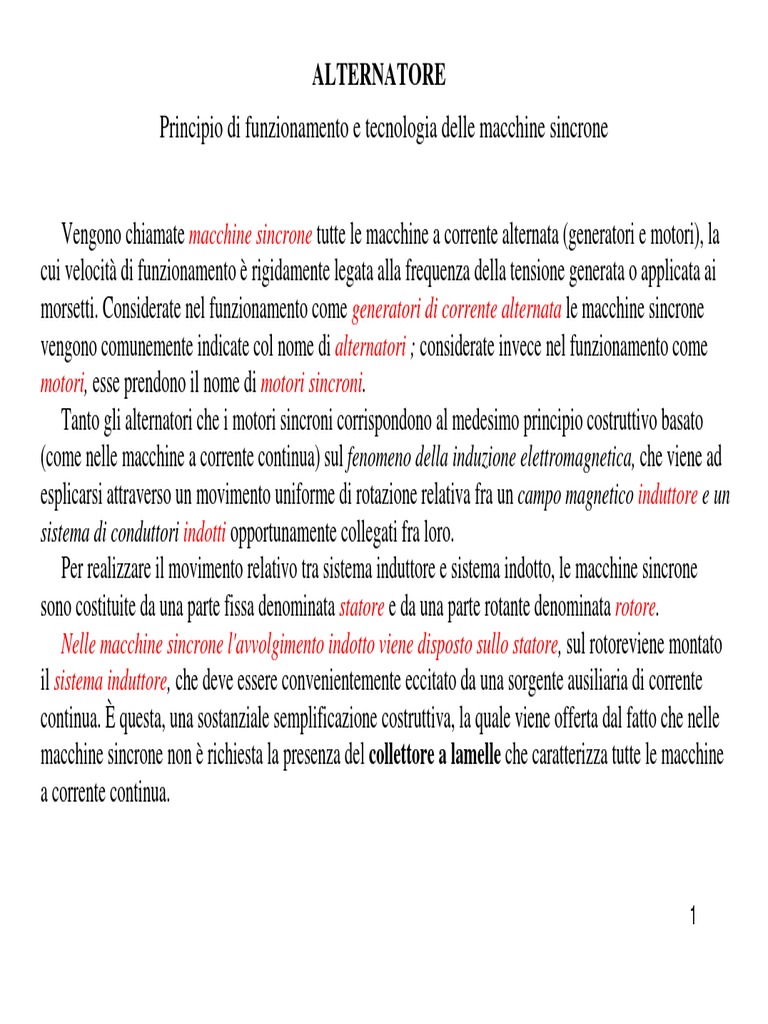 Tanto gli alternatori che i motori sincroni corrispondono al medesimo principio costruttivo basato