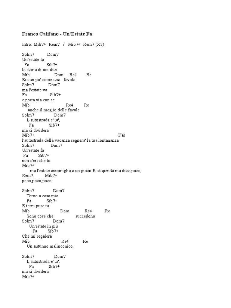 Franco Califano - Un'Estate Fa