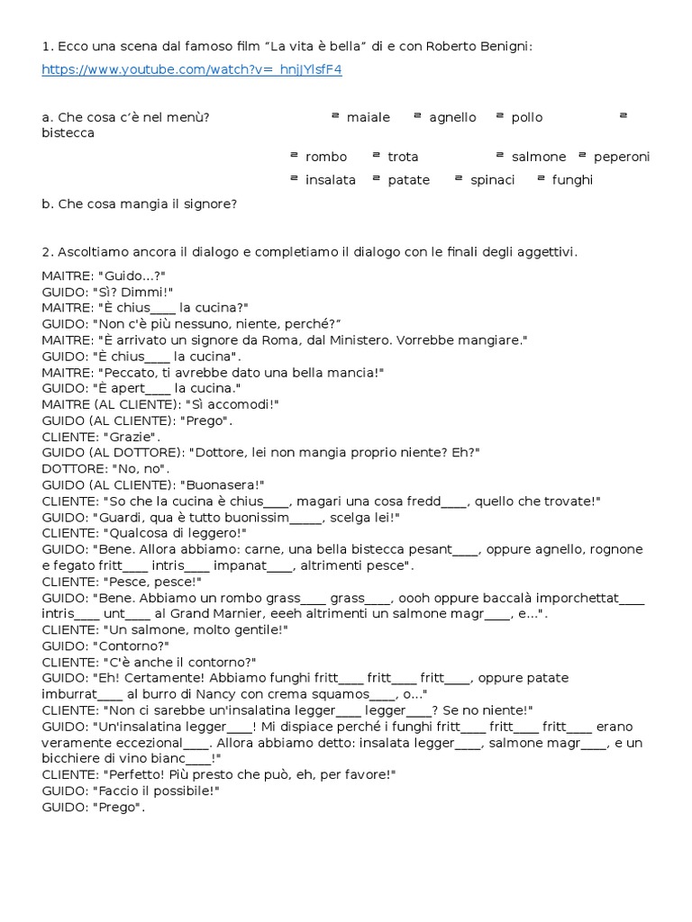 2. Ascoltiamo ancora il dialogo e completiamo il dialogo con le finali degli aggettivi.