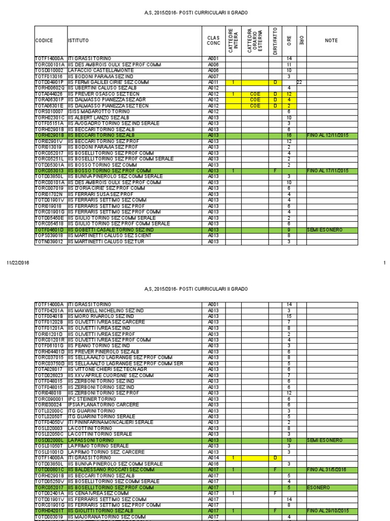 A,S, 2015/2016- POSTI CURRICULARI II GRADO