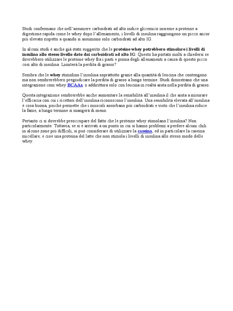 digestione rapida come le whey dopo lallenamento, i livelli di insulina raggiungono un picco ancor