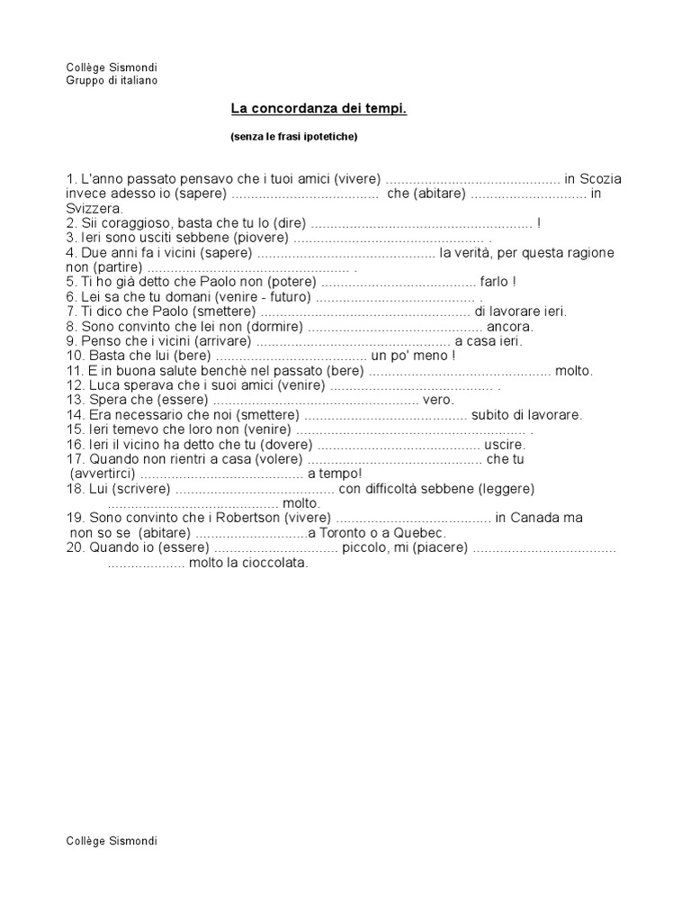 15. Ieri temevo che loro non (venire) ........................................................... .