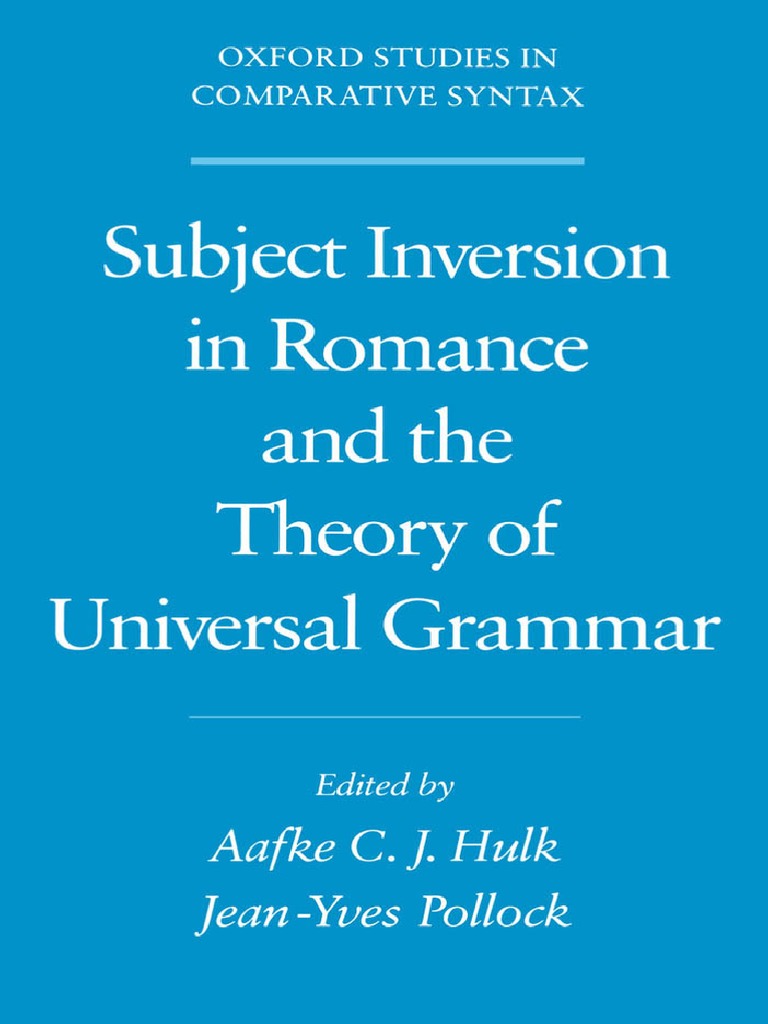 Subject Inversion in Romance and the Theory of Universal Grammar Edited by Aafke Hulk and Jean-Yves Pollock