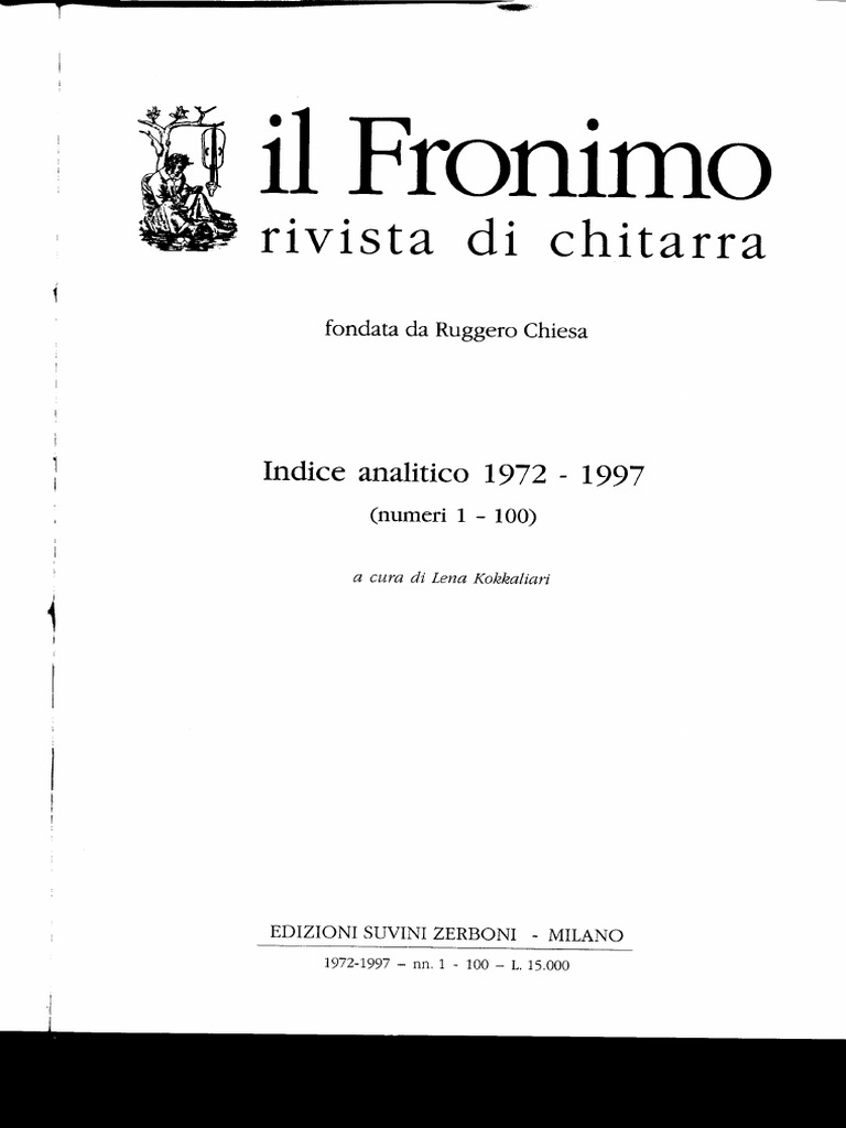 Il presente Indice analitico comprende tutti i numeri de “il Fronimo” usciti dallottobre