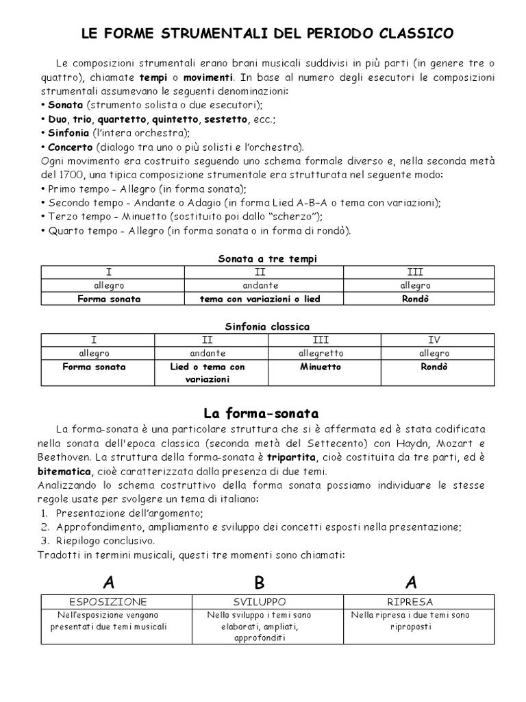 LE FORME STRUMENTALI DEL PERIODO CLASSICO