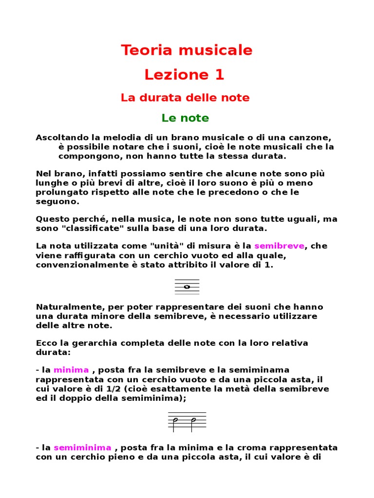 cui valore di 1/2 (cio esattamente la met della semibreve