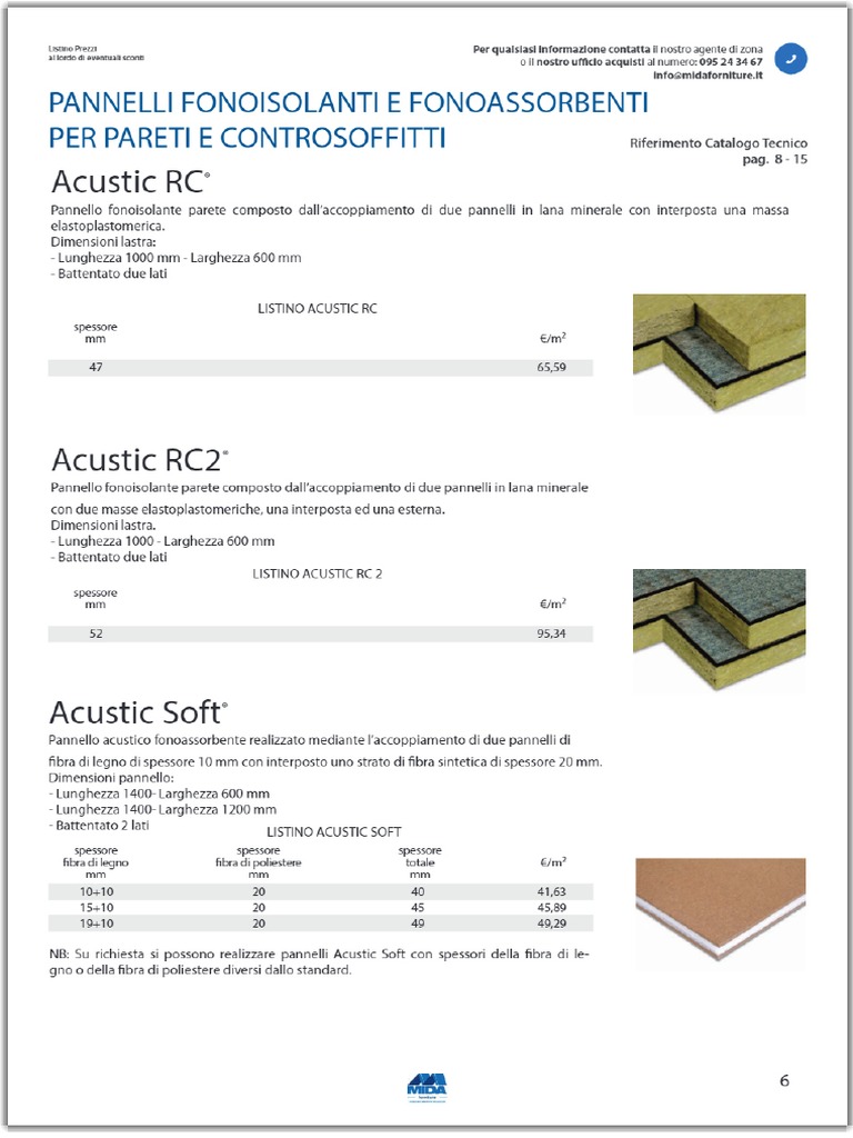 LISTINO SISTEMI PER L ISOLAMENTO ACUSTICO