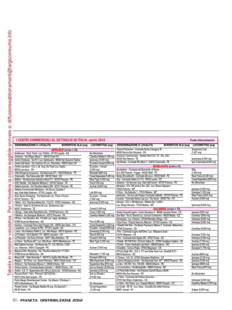 I CENTRI COMMERCIALI AL DETTAGLIO IN ITALIA: aprile 2012