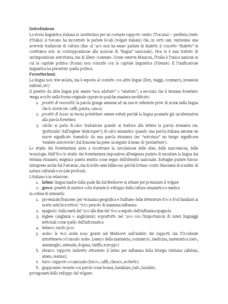 La storia linguistica italiana si caratterizza per un costante rapporto centro (Toscana) periferia (resto