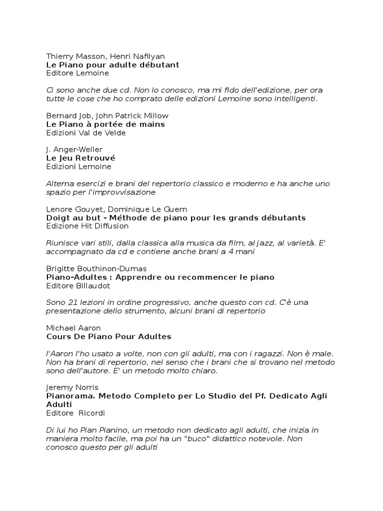 Di lui ho Pian Pianino, un metodo non dedicato agli adulti, che inizia in