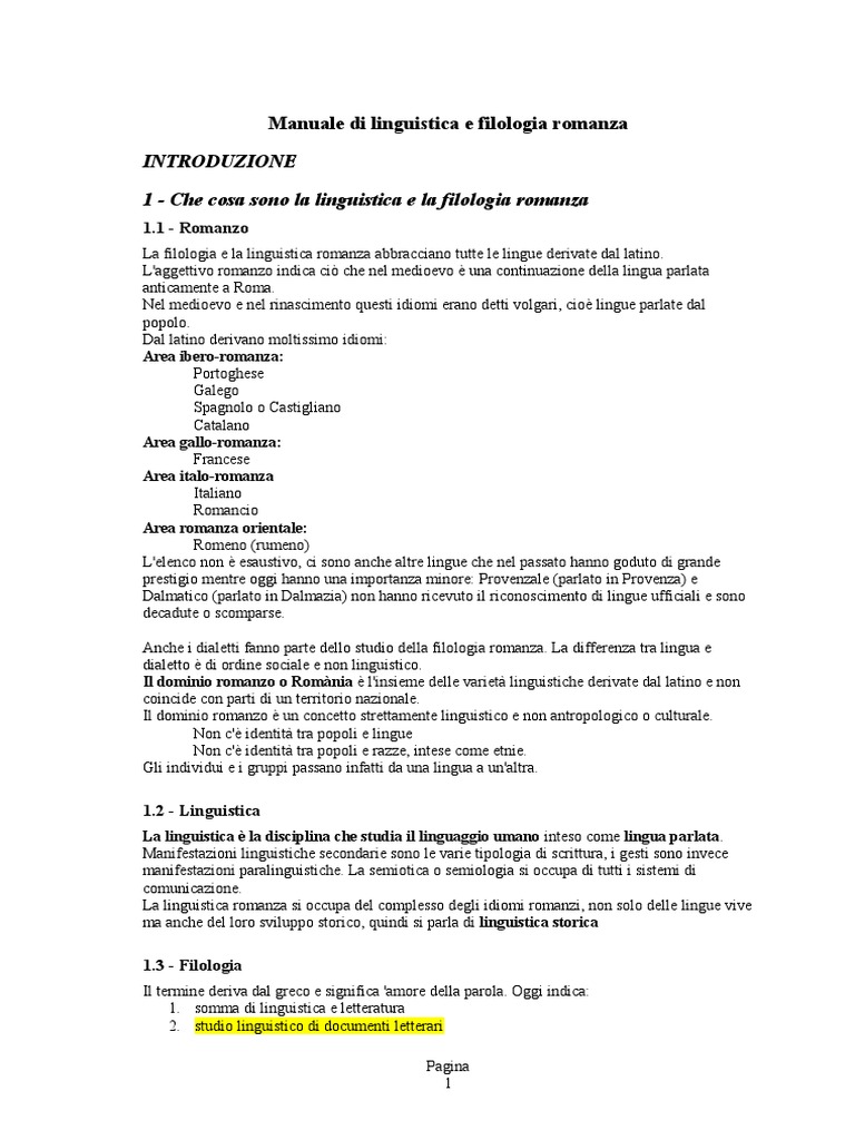 1 - Che cosa sono la linguistica e la filologia romanza