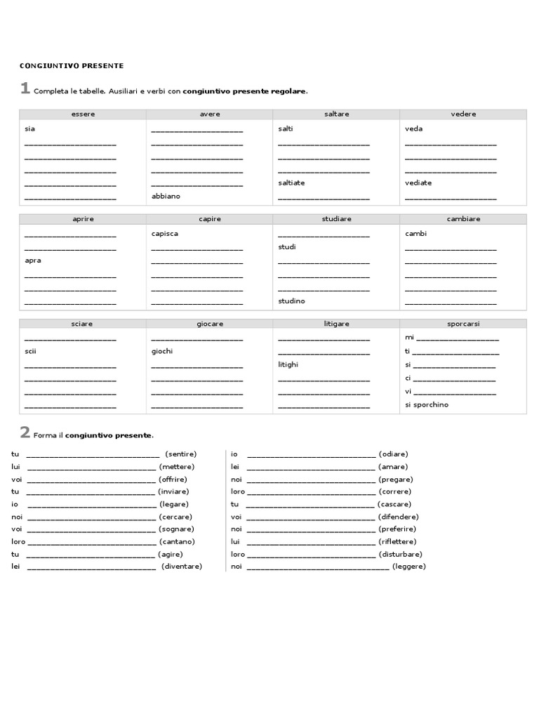 1 Completa le tabelle. Ausiliari e verbi con congiuntivo presente regolare.