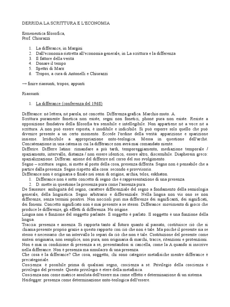 DERRIDA LA SCRITTURA E L'ECONOMIA
