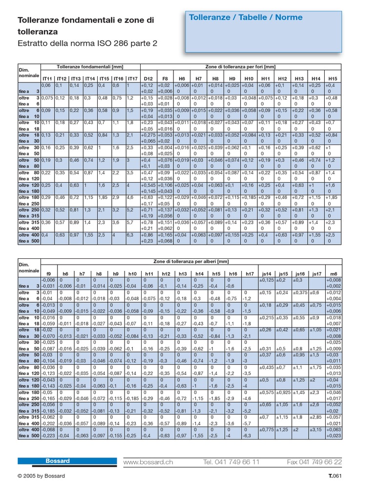 Tolleranze / Tabelle / Norme