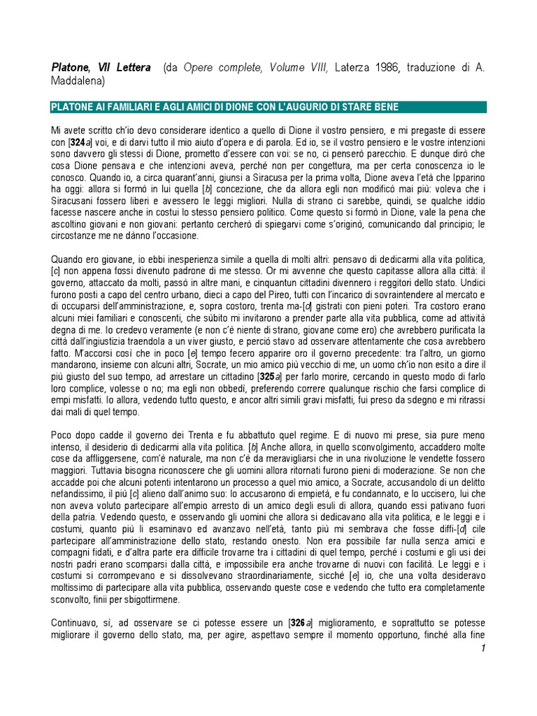 Mi avete scritto chio devo considerare identico a quello di Dione il vostro pensiero, e mi pregaste di essere