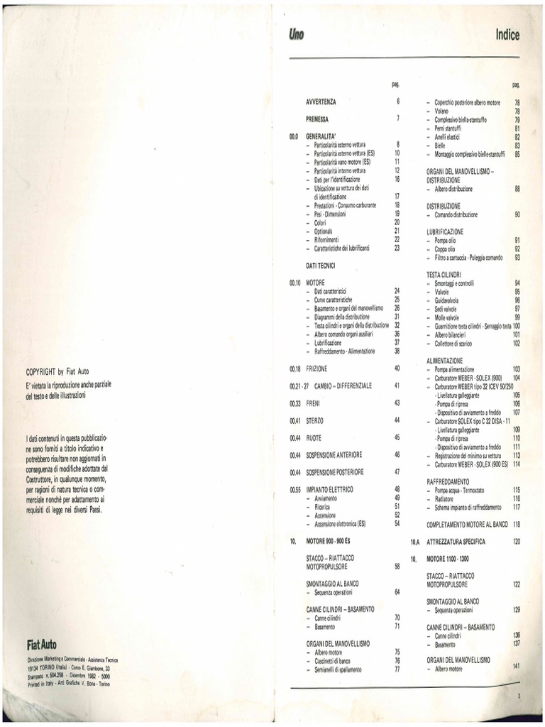 COPYRIGHT by Fiat Auto vette rprodzone anche parisle del testo e dell ustracinl 1 dati content in questa pubbicaro ‘ne rono fori a titolo indiatvo © Potrebber risultare non agama in ‘onsequensa di modiiche adottate dal Cortrator, In qualunque momento, equi logge nel vrs! Pao Uno Indice AVVERTENZA ° = Sroeiosonor sbero metre 78 = % PREMESSA ? = Sete testo 3 on0GENERALITA = Asa t e Se Nfestst emo vere * = he S = Reisiastineanreie) 8 = Montego compen bislestnstt 88 = Peetslans lnemoverre @ ‘omcaN DEL maNOvELLisMo — = Batgwerdorateatone 6 Steraraveione = Cheb ete dio * Se eee ceucone « = Fratton Somumocabune I pistpieuzione = ReDimenson 3 2 Fernde debusone 0 = Sel zg Lngincazione i = Garatratiche dei ubriiane 2B = Capps so a Title vestecia-Puepiscomanto $3 Dari Teentt TestaciunoR! 010 woroRE Tor eon 1 crits a 2 ee = Sinemet z Soe = Sather Carpet minowtione 8 = Sterna = Bilgums cate dette x = Waietete = Femicinatt eon dodauibwione 32 Teen we nds sera = Cibrieasone 7 Galore dscarico = RRC -atmantsion 3 cose FRIZIONE «0 sien 103 = Carre WEBER -SOLEX G00) TOR 0021-27 CAMBIO DIFFERENZIALE “ = Gtratre WEBER cp 3 Ice 60250 053 REN o Pompa dips 108, Dapelined events steso oar srenz0 “ = ChbusreSOLEe pve BISA 11 : isan glenn 10 Dupouthoar iments tro Ht e044 SOSPENSIONE ANTERIORE “ = fegieelomal niecssesare 18 = Gch weaeh soe waves) 18 0.4 SOSPENSIONE FOSTERIORE a AFFREODAMENTO 05s mPanro ELerraico « Monge Tmosata 15 teams 2 = fname ue = Rowe s SSremelmpianoditieadareno HF = Aeaone etna 5) o ‘COMPLETAMENTO MOTORE AL BANCO 118 10. MoToRE 600-905 0A ATTREZZATURA SPECIFICA 10 sracco — niarracco 10, MOORE 1100: 100 WoYornorvcaone = stacco — miarracco SWONTAGGIO AL BANCO Meromrorutsone 1m cones oun “ stqacsio a sao a to Sauna om R ‘ANNE CILINDRI ~ BASAMENTO cM Csi in 193 (onGaW DEL MANOVELLISMO ” = Seamene ca = SEEN ——onoqroecunwoveissno = Stet otro ” oneibere oto eI SSSIndice Uno Uno Indice = cca onc 1 CCOMPLETAMENTO MOTORE AL BANCO. 205 seayotasTeRz0 SCHEMA (Une S) = Set palmer i ‘Gn eracco 283 SP"Glocsoore Aerial stv 318 = Eepelopesaronbwemeoe HE MOA ATTREZZATURA SPECIFICA 208 = Sono martaic ie oe = ee emuron sberomne 1a? 1 FRIZIONE LATTREZZATURA SPECIFICA 20 Fane eer ae = SBeroamendo ow suit 1B Incite rsane Fase poraire 320 = Bipucsecomsnas orm wsion 18 SsTaceo ~ RIATTACCO 208 44, sospensionte RUOTE = Giplenvo tiasensto 30 CHEK — sySTEM (Uno 8) = Fomisancrt 1 ‘COMANDO OIsINNESTO. SOSPENSIONE ANTERIORE Dhoni conto sMcerss verre 321 iS COMP Conat ogi Pies 200 = Ghost ero contra z = Forel 20 = Srentgimertonio in Stet santo Be = Baxcote — Fol: Dic contoto-Sinisiea 710 = oso snare mm = onitusionsfuoranento reno 338 = Nertanso comlenv bitestontt = Compe mata ce = Gonuotio eso 2 = Steno a cowPLessivo ™m fommontzore ne {Site rarasso modo setronia = Pano compeoont ie ‘Sroio® monftorelshacceyse 228 TESTACILINDAL 18A _ATTREZZATURA SPECIFICA ™m toiponan anterior ne = Tatas forionament TS Gonay eer ry = Eno naana town ano 270 "omnes income estore 329 ay 18 21-27, casio oirFeneziaLe = Sitio 1s SOSPENSIONE POSTERIORE ‘TERGICAISTALLI = = Sediaoie i SSTAGCO - RIATTACCO am Sesganeo ass ma = iin i Srna monsaic me /ACCENSIONE ELETTRONICA STATICA = Mota vate 1s SMONTAGGIO AL BANCO Fema tno moczo ae Gros = wreterbone o SMcpaniso eos a8 = Partolr component (OW ezusone detonica od ato sco = mee vo epeions pears mm ihrer overuse = Magi wns peor i" voTisin caMio = Seta easing tt seme = aoa gists vloe m Trung "Bosole-Moti-Maicoti 222 ALA ATTREZZATURASPECIFICA ma Scormane IGIPUEX = = Gobet we 1B ‘Secon EA = ES del amperes Se = Strange ste "" ‘Aero prima Zt 50, ORGANI SUSSIDIARY Site comer S = Compote nbr andes zs T Bitherisewomes tomate 30 bisraiauzione ISCALDAMENTO — VENTILAZIONE oS ena v8 GRUPPO DIFFERENZIALE m eG d aaament evertcione Disrostrivo cur-oFF (Uno es) = Ginga dente ve oe Sembe Bo ‘iow ea SN Dapoutna ners simon: ALiMenaziont we WONTAGGIO mm Strep mama Es = Bion een oa T Ganurmore WEBER SOLE (1100) 180 ‘COMANOI ESTERNI CAMBIO 20 55, INPIANTO ELETTRICO EECONOMETAO (Uno ES) = Garurore WEBER tipo 32 1CEV 81280. SeGsectem Ines dl onsmo 304 ‘are also a) 21-27A ATTREZZATURASPECIFICA, «283, RICARICA = Spalted coms meses LED Pao pres 183 eefonena Al 00 Sona 25 Dimuttivodraramenostedéo 1033 FREN = entre ei m = Blame i pinot inonioninss 347 = Garurmore SOLEX ope C32 ISA. 12 = Canes me Thais alee we ‘CoMANOO 1DRAULICO = Rate a CHEMI IMPLANTO ELETTRICO oa Pampas 18 ade Seema io a Prova strstr banc ipostve rawviametosfraddo 188 indo masroo des Bisons prep et 70. cARROZZERIA = Renacra mimo serra 168 = Suan de Sacre dene 0 = Ghborore WEBER SOLEX (1300) 189 PARTI MoRIL! = Chowne WEBER REMI ANTERIOR! AvviaenTo. PN Copareio Yoo motore et Spo 0732 OMT oa ‘sm rotaccs AN otr eamenteResone 08 = Fore 3s liars lennon 10 Pos ten = ove meteor Dag = Peetone mm ome ieee is Dl an - Gums ean fog incareriar o oonrets Convato apertura a 12 = Spiraea Semcon m ‘imran aament. 08 PaRAURTI Diositos aeent 308 earpau naire m ~ Gaternor so Ex ap C2058 REMI POSTERIOR! AACCENSIONE = sur gorrne a tre ateote 19 ‘Sano teen 22 ae plnbutereecersone = Pome pes 198 ‘Fur ten Cana oe Mn ae a migrant ‘pat rvimctoafeddo 196 Gina comnde peace Surg aie 288 Saal partressa ms ~ Regsvacone i miroveara 198 Sonrerore a wena Stceovintacss 288 isosiriv VAR = Graal ponerire EY — = Frio nainuments Ey Sado eonete 2 = Ga a someane: 2 ome sie 19 S8A__ATTREZZATURA SPEcIFICA 20 Gent comando mentors = Wits aoiion prenione to 300 ‘Sreronae Coma u seion& SEDILI ANTERIOR! = Capone” cre 4, srenzo Src reo ae = AFEREDDAMENTO. ‘coManoo srenzo = Gaara deaxore-Fonon- 3 IVESTIMENTO PLANCIA eMponet aces om ‘Gace: Tne 20 Iiurtor combare mm eGo rates oa armors Radio ‘Sontag manta a = Recapers-Alaenaio(Unos) 318 ‘lsmrovesionse a = Contato pontone EdIndice Uno Premessa SOSTITUZIONE LAMIERATE ~~ ouote init ow ieorrto Stetson teeter anne 386 ‘nner dle nece a6 = Sttturonereimentosorapare 390 = Schone er cone f
