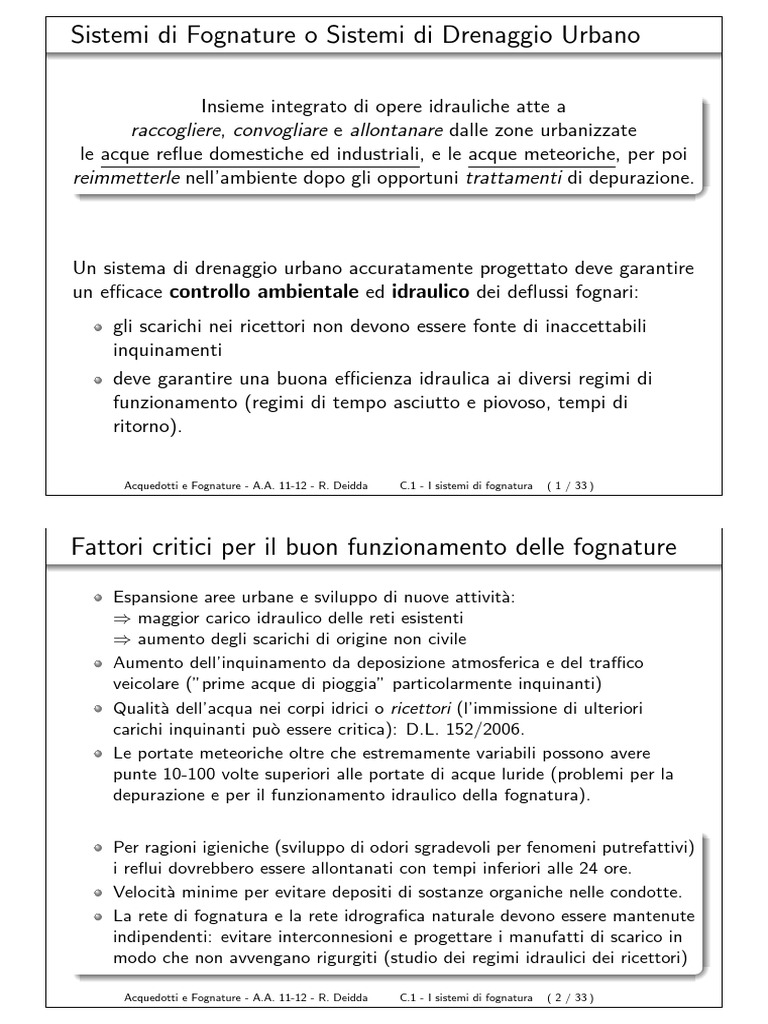 Acquedotti e Fognature - A.A. 11-12 - R. Deidda C.1 - I sistemi di fognatura ( 3 / 33 )